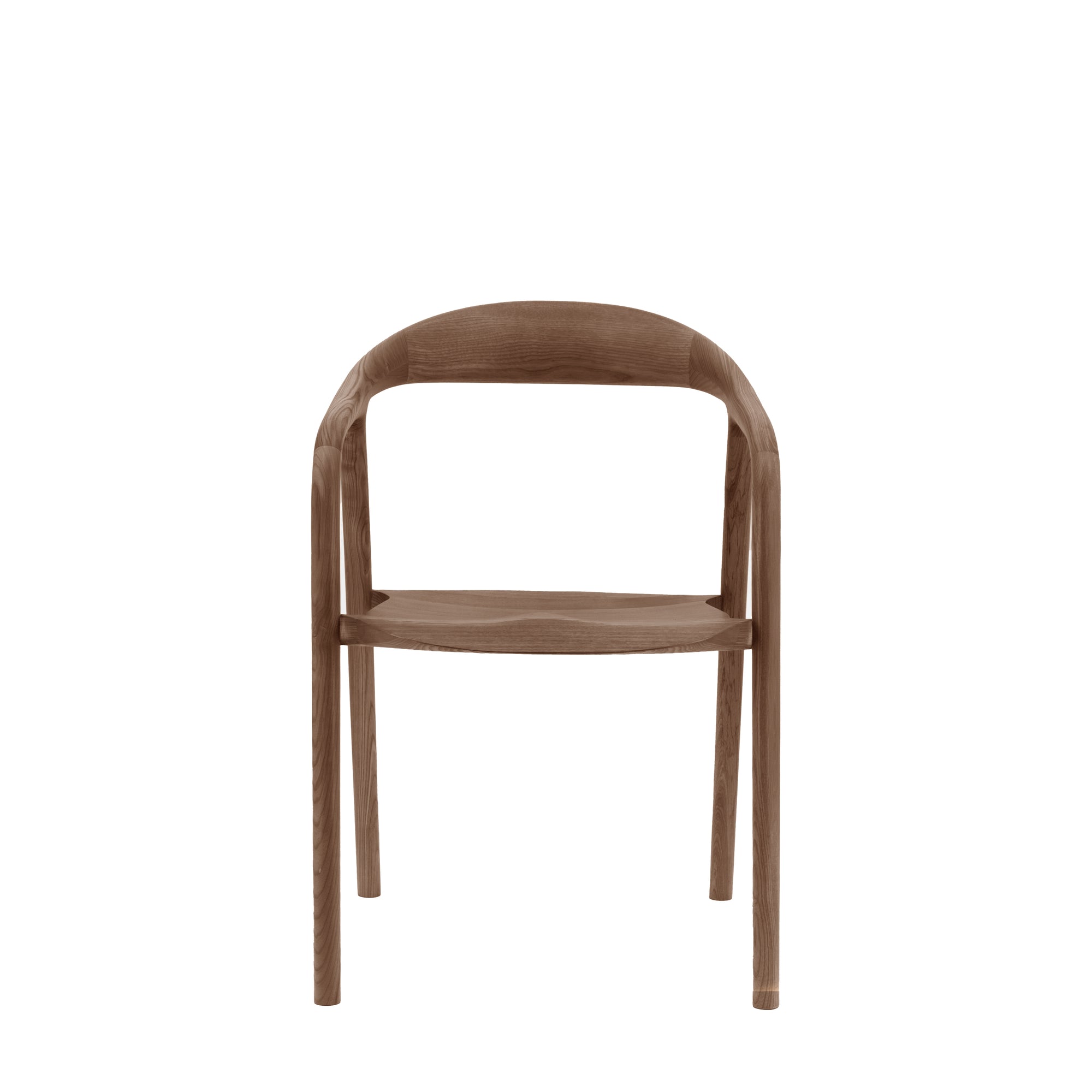 This dining chair is a stylish and comfortable addition to any dining space. Its curved backrest and armrests provide excellent support, while the tapered legs create a minimalist and modern look. The seat offers comfort and style, while the rich walnut finish adds warmth and character to your home. Perfect for entertaining guests or enjoying family meals.