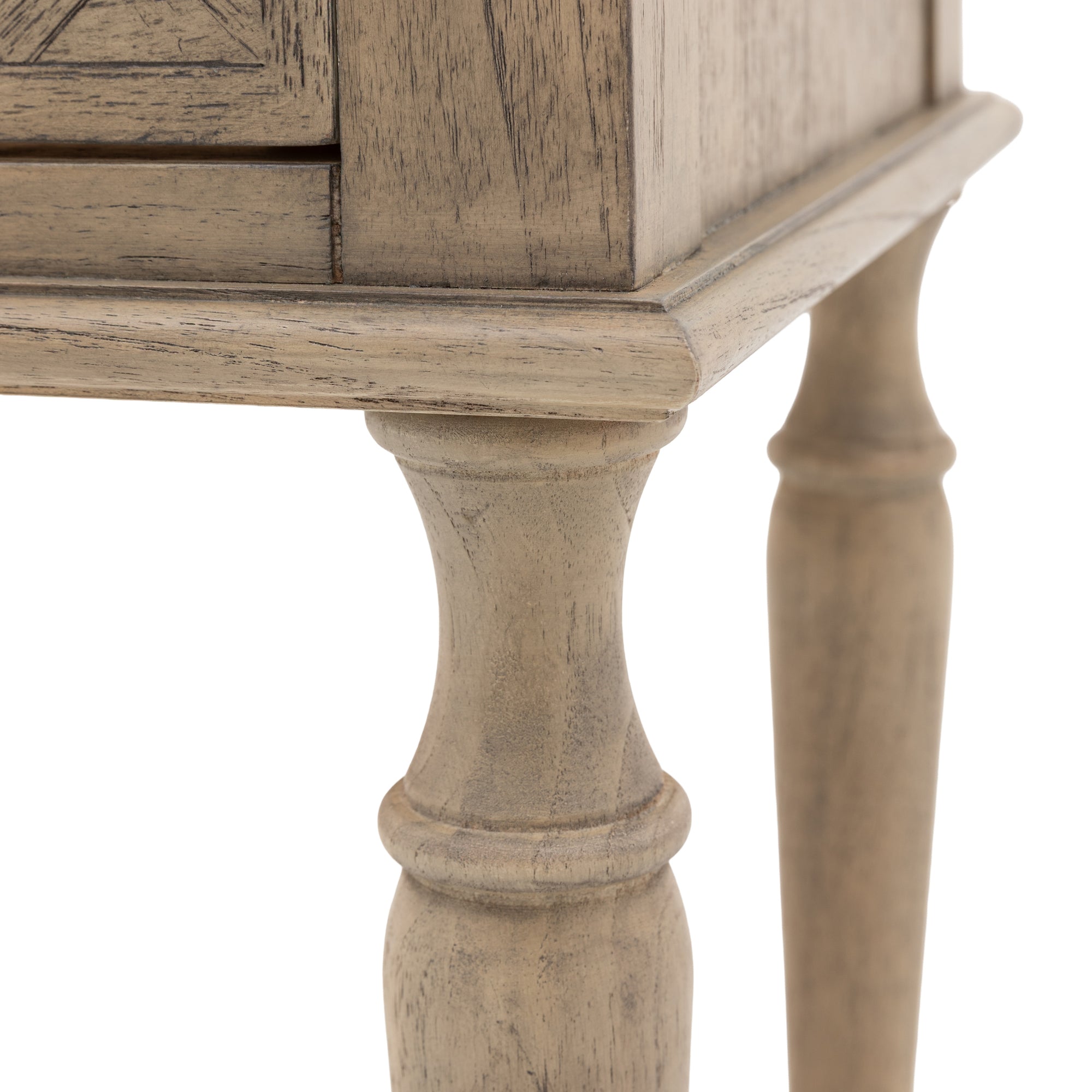 With a nod towards the french colonial style this 1 drawer side table is made from mindy ash and features parquet inlaid vaneer work in a lightly brushed natural finish.