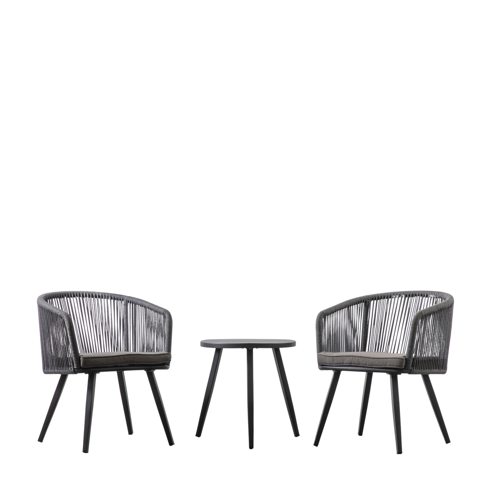 This lovely 2 Seater Bistro/Tea Set offers two chairs and a side table, making it ideal for smaller spaces and cosy garden corners. The table and chair frames are made from powder coated aluminium, with weatherproof rope weave for the chair seats and showerproof scandi-style cushions in a coordinating colour for added comfort. A matching dining set is also available.